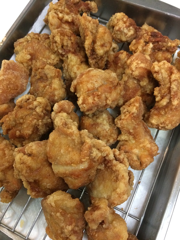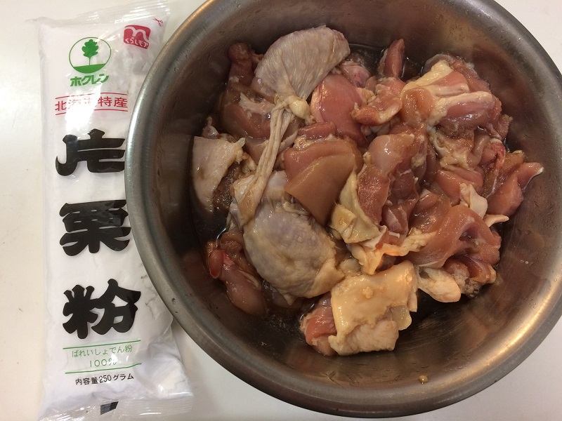 味付けは袋に書いてあった通りに醤油と酒のみ。あと片栗粉付けて揚げます。